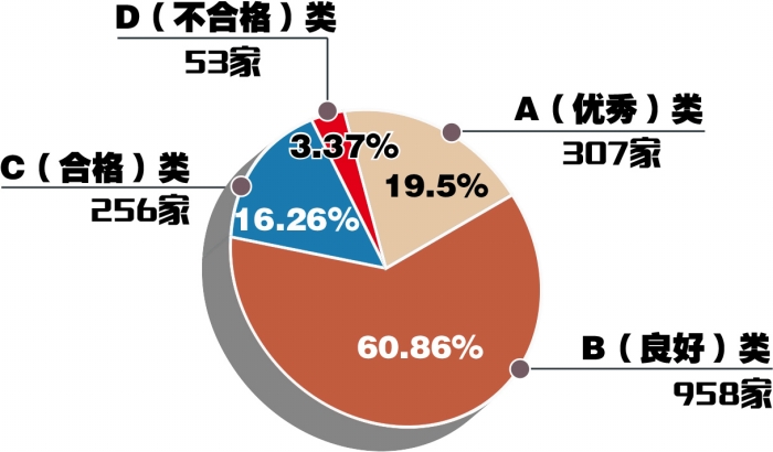 近日,上交所公布了沪市主板上市公司2020至2021年度信息披露工作评价结果。本次参加评价的对象是2020年12月31日前上市的主板公司,合计1574家,评价期间是2020年7月1日至2021年6月30日。评价结果显示,评为A(优秀)类、B(良好)类、C(合格)类、D(不合格)类的公司分别有307家、958家、256家和53家,占比分别为19.5%、60.86%、16.26%和3.37%。从近三年的评价结果来看,比例结构大致相当,有168家公司连续三年被评为A类。
