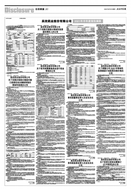 辰欣药业股份有限公司(以下简称“辰欣药业”或“公司”)于2021月8月18日召开第四届董事会第七次会议和第四届监事会第七次会议,会议审议通过了