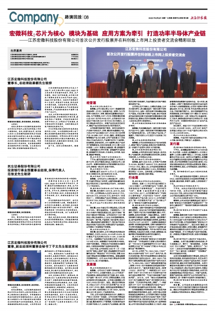 ——江苏宏微科技股份有限公司首次公开发行股票并在科创板上市网上投资者交流会精彩回放