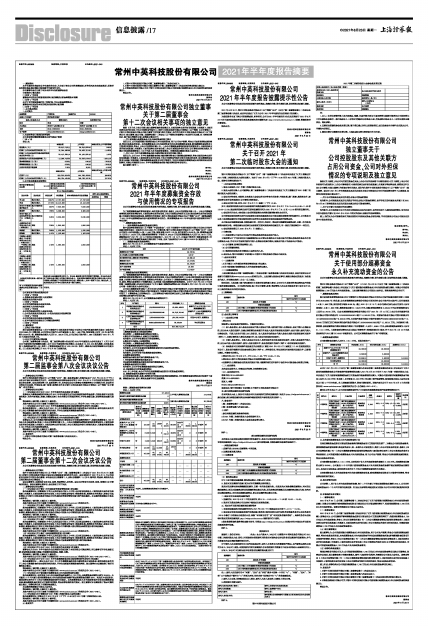 常州中英科技股份有限公司(以下简称“公司”)第二届董事会第十二次会议于2021年8月20日(星期五)在常州中英科技股份有限公司会议室以现场结合通讯的方式召开。会议通知已于2021年8月15日以电话和其他通讯方式送达各位董事。本次会议应出席董事7人,实际出席董事7人(其中:梁华权、符启林、周洪庆先生以通讯表决方式出席会议)。