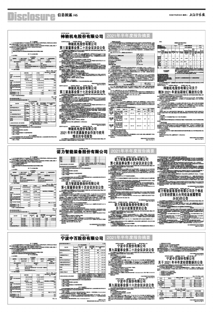 具体内容详见公司同日于上海证券交易所网站(www.sse.com.cn)披露的《诺力股份2021年半年度报告》及《诺力股份2021年半年度报告摘要》。