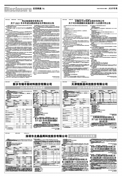 天津锐新昌科技股份有限公司(以下简称“公司”)于2021年8月23日召开第五届董事会第七次会议和第五届监事会第七次会议,审议通过《关于公司2021年半年度报告全文及摘要的议案》。