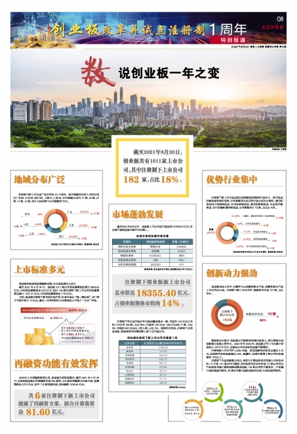 截至2021年8月20日,创业板共有1011家上市公司,其中注册制下上市公司182家,占比18%。