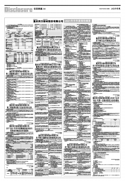 根据《上市公司监管指引第2号一一上市公司募集资金管理和使用的监管要求》、《上海证券交易所上市公司募集资金管理办法》、《上海证券交易所股票上市规则》等有关规定,重庆四方新材股份有限公司(以下简称“公司”)现将2021年半年度募集资金的存放与使用情况专项说明如下: