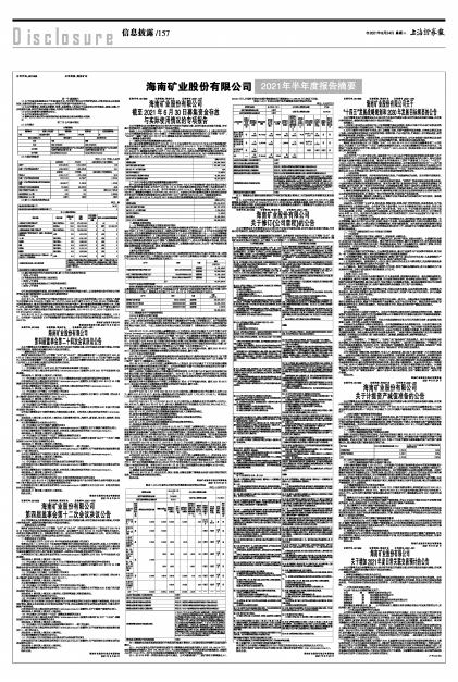 证券代码:601969 证券简称:海南矿业 公告编号:2021-057