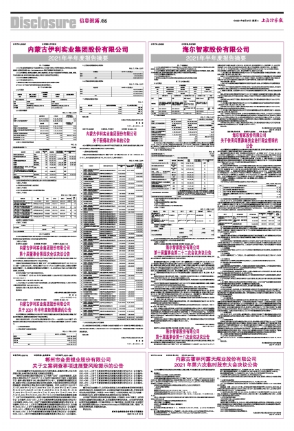 内容详见与本公告同日刊登在上海证券交易所网站上的《海尔智家股份有限公司2021年半年度报告》及摘要。