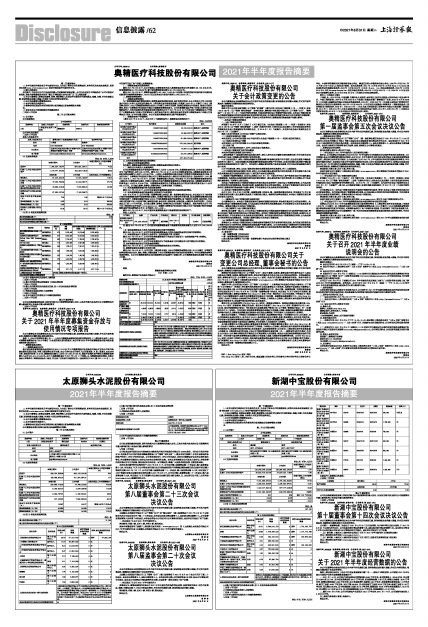 具体内容详见同日披露于上海证券交易所网站(www.sse.com.cn)的《奥精医疗科技股份有限公司2021年半年度报告》及其摘要。