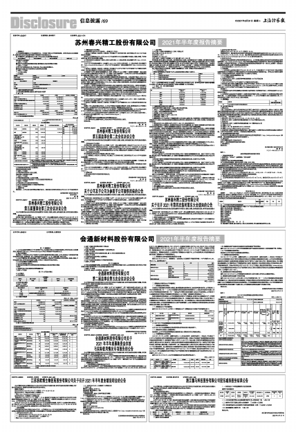 具体内容详见公司于同日在上海证券交易所网站(www.sse.com.cn)披露的《会通新材料股份有限公司2021年半年度报告》及《会通新材料股份有限公司2021年半年度报告摘要》。