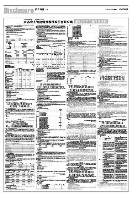 江苏北人智能制造科技股份有限公司(以下简称或“公司”)于2021年8月30日在公司会议室以现场结合通讯方式召开了第二届董事会第二十次会议。本次会议的通知于2021年8月19日通过邮件方式送达全体董事。会议应出席董事9人,实际到会董事9人,会议由公司董事长朱振友先生主持。会议的召集和召开程序符合有关法律、行政法规、部门规章、规范性文件和《公司章程》的规定,会议决议合法、有效。