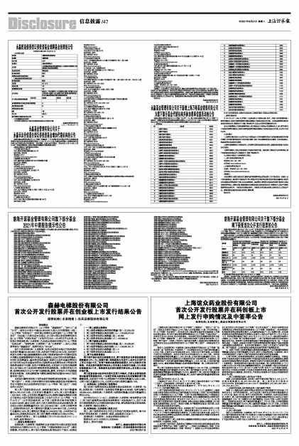 发行人与保荐机构(主承销商)定于2021年8月31日(T+1日)上午在上海市浦东新区东方路778号紫金山大酒店四楼海棠厅进行本次发行网上申购的摇号抽签,并将于2021年9月1日(T+2日)在《上海证券报》《中国证券报》《证券日报》《证券时报》上公布网上摇号中签结果。