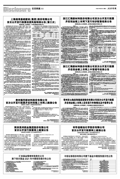 原定于2021年8月17日举行的网上路演推迟至2021年9月7日,原定于2021年8月18日进行的网上、网下申购将推迟至2021年9月8日,并推迟刊登《上海港湾基础建设(集团)股份有限公司首次公开发行股票发行公告》。