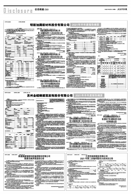 具体内容详见公司同日在指定信息披露媒体披露的《明新旭腾2021年半年度报告》和《明新旭腾2021年半年度报告摘要》。