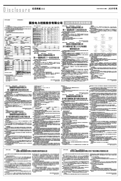 国投电力控股股份有限公司(以下简称“公司”)第十一届董事会第三十一次会议于2021年8月20日以邮件方式发出通知,2021年8月30日以通讯方式召开。本次会议应出席董事9人,实际出席董事9人。本次会议的召集和召开符合《公司法》和《公司章程》的有关规定。