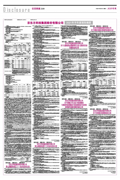 具体内容详见与本公告同日披露的《京东方科技集团股份有限公司2021年半年度报告》全文及摘要。