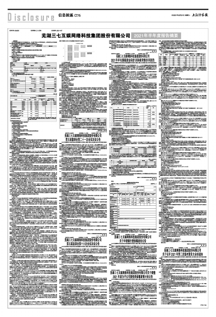芜湖三七互娱网络科技集团股份有限公司(下称“公司”或“本公司”)第五届董事会第二十一次会议通知于2021年8月20日以专人送达、电子邮件、电话方式发出,会议于2021年8月30日在公司会议室以现场与通讯结合的方式召开。本次会议应到董事8位,实到董事8位。公司监事、高级管理人员列席了会议,会议由董事长李卫伟主持。会议的召集和召开符合法律、法规及《芜湖三七互娱网络科技集团股份有限公司章程》(下称“《公司章程》”)的有关规定。本次会议作出了如下决议: