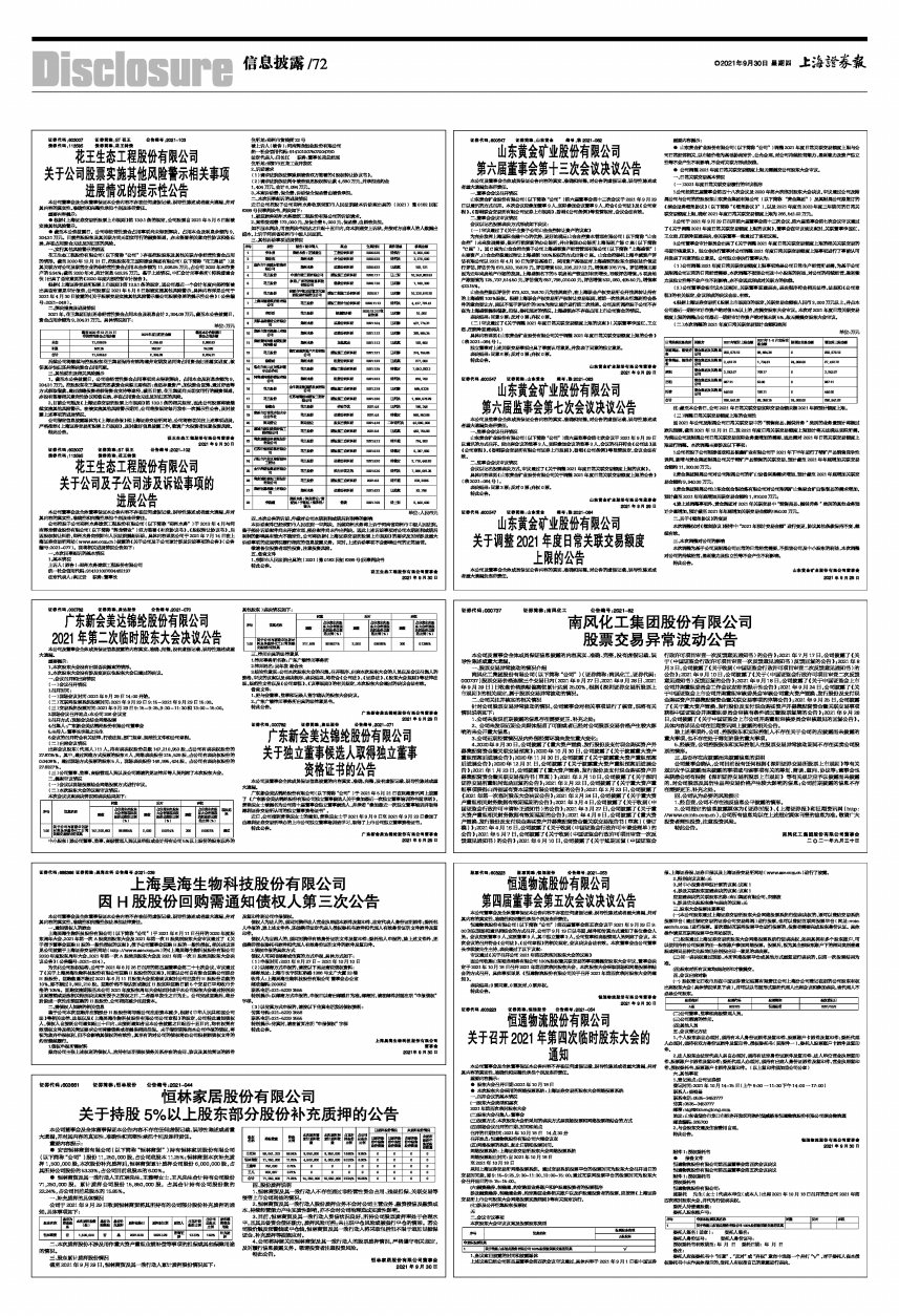 证券代码:000737 证券简称:南风化工 公告编号:2021-82