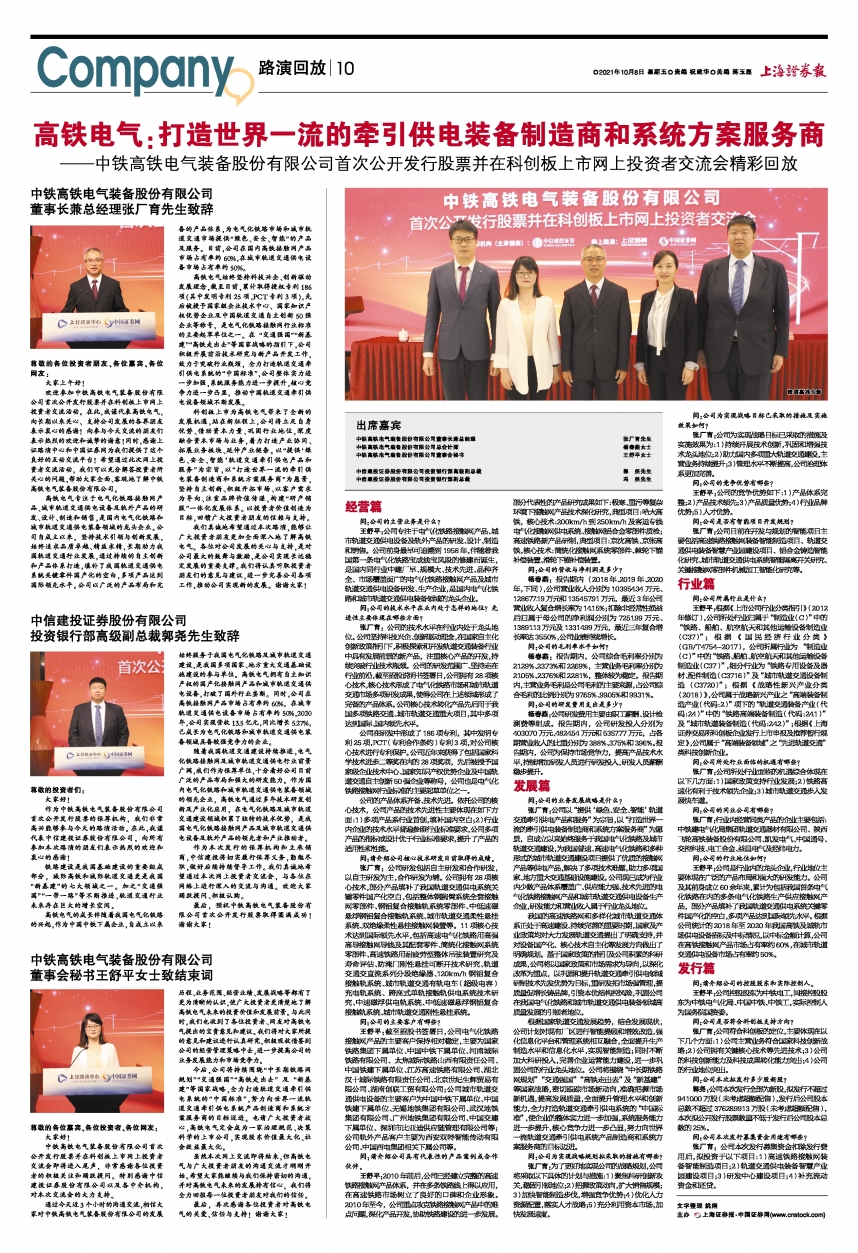 ——中铁高铁电气装备股份有限公司首次公开发行股票并在科创板上市网上投资者交流会精彩回放