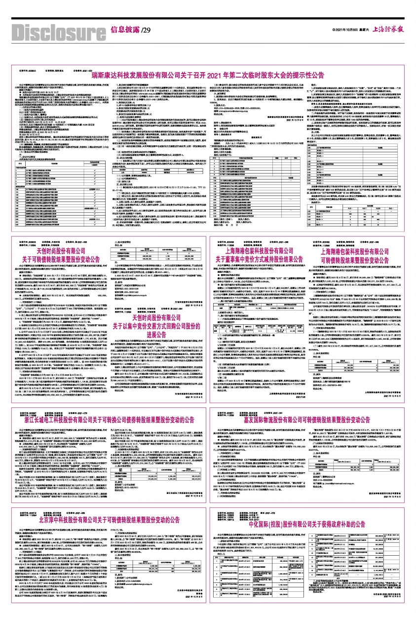 截至2021年9月30日,累计共有164,000元“嘉友转债”已转换成公司股份,累计因转股形成的股份数量为7,139股,占可转债转股前公司已发行股份总额的0.0033%。