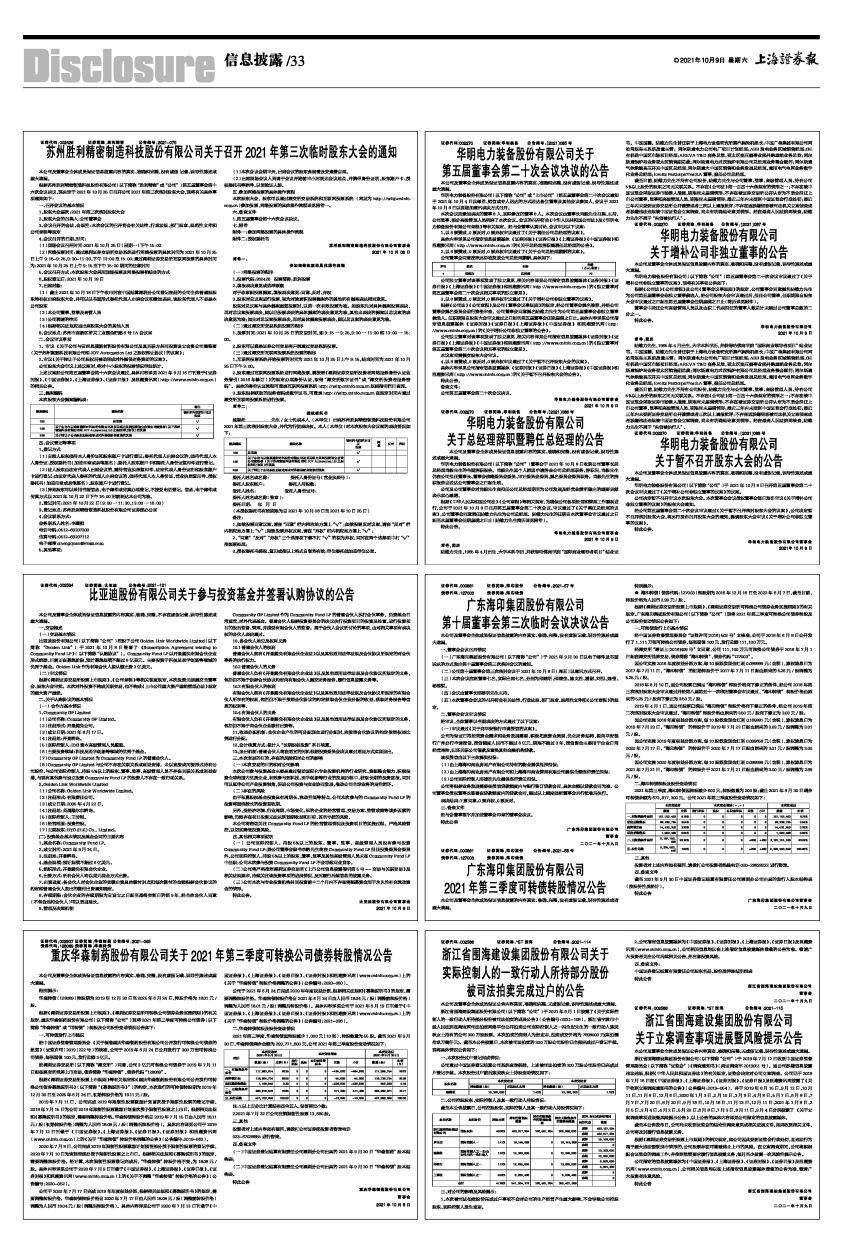 根据《深圳证券交易所股票上市规则》、《深圳证券交易所可转换公司债券业务实施细则》的有关规定,广东海印集团股份有限公司(以下简称“公司”)现将2021年第三季度可转换公司债券转股及公司股份变动情况公告如下:
