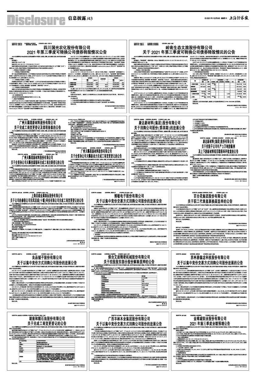 2021年第三季度可转换公司债券转股情况公告 -