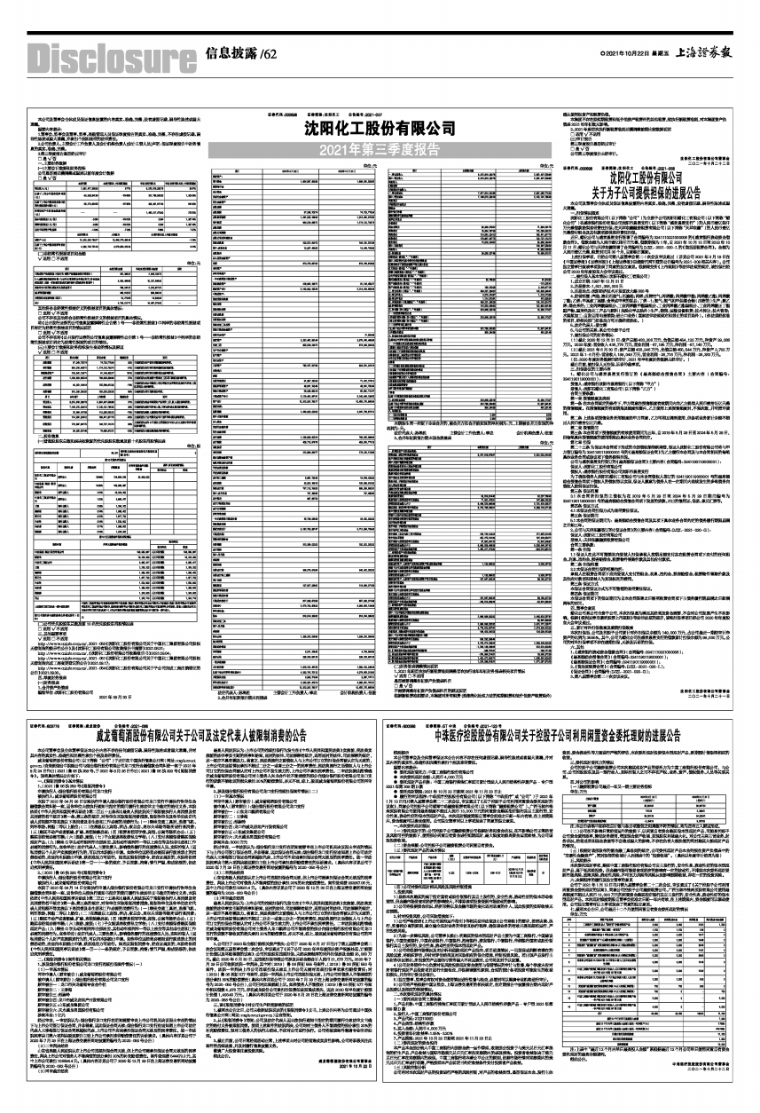 证券代码:000698 证券简称:沈阳化工 公告编号:2021-057