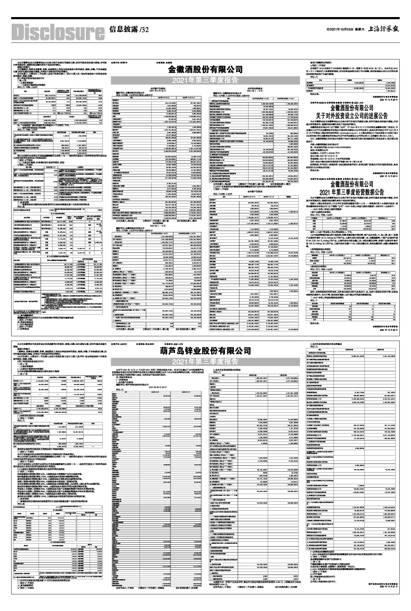 葫芦岛锌业股份有限公司2021年第三季度报告