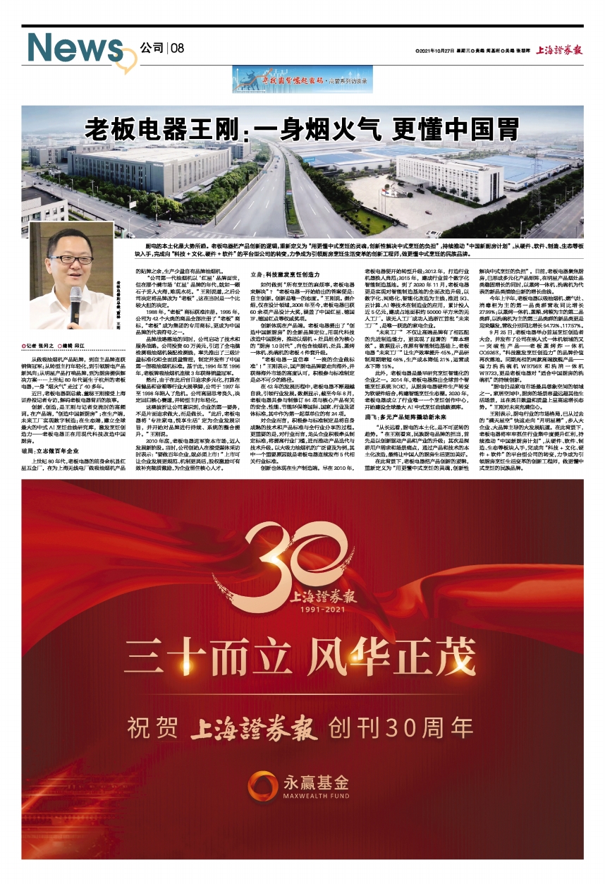近日,老板电器副总裁、董秘王刚接受上海证券报记者专访,解码老板电器背后的故事。