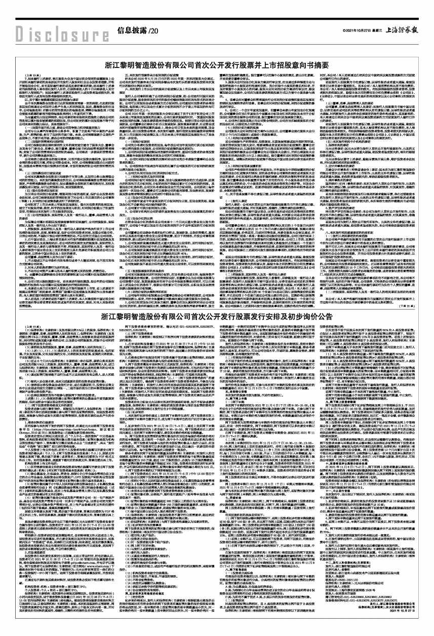 浙江黎明智造股份有限公司首次公开发行股票并上市招股意向书摘要