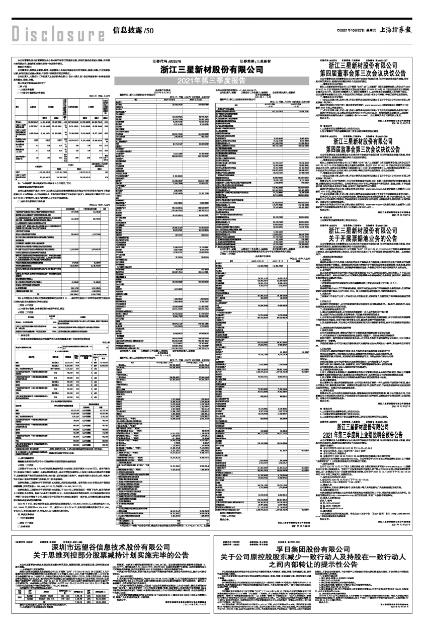 具体内容详见公司同日在上海证券交易所网站(www.sse.com.cn)及指定媒体上披露的《三星新材2021年第三季度报告》。