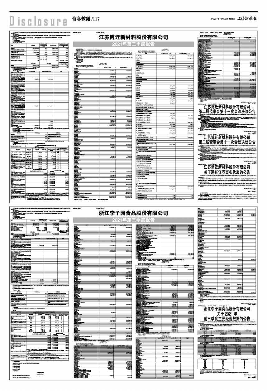 浙江李子园食品股份有限公司(以下简称“公司”) 根据上海证券交易所《上市公司行业信息披露指引第十五号一一食品制造(2020年修订)》的有关规定,现将公司2021年前三季度主要经营数据(未经审计)公告如下: