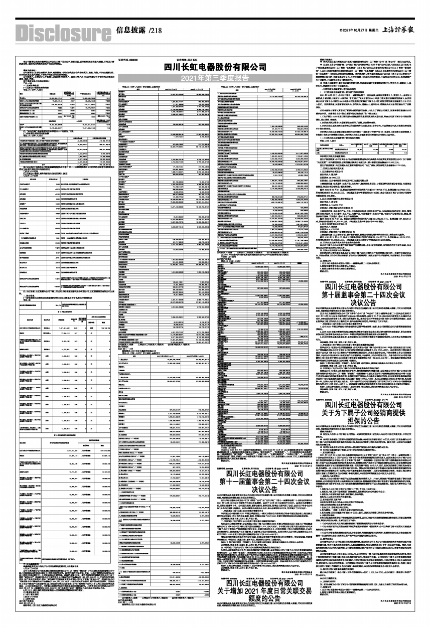 证券代码:600839 证券简称:四川长虹 公告编号:临2021-045号
