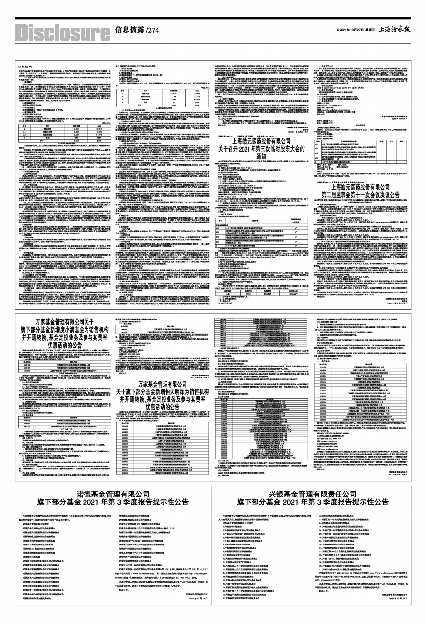 旗下部分基金2021年第3季度报告提示性公告