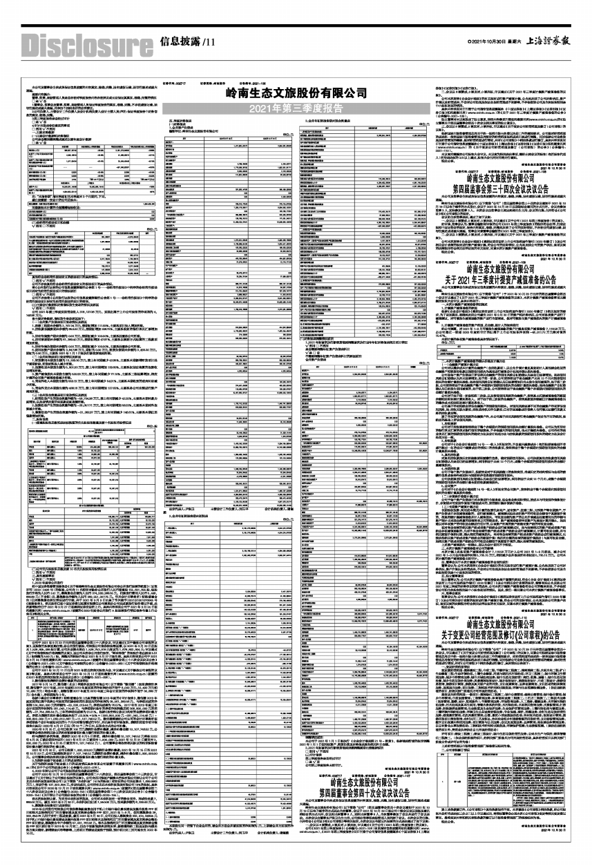 岭南生态文旅股份有限公司2021年第三季度报告