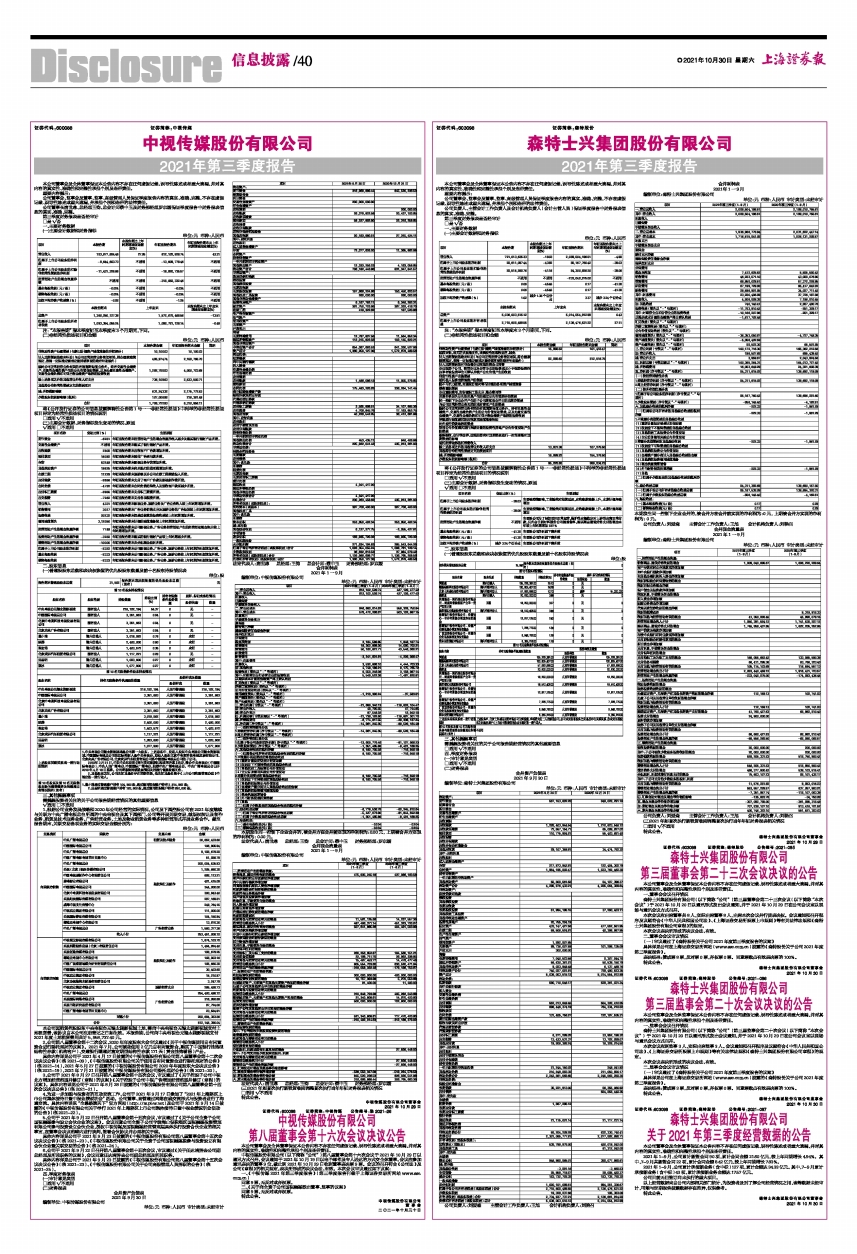 森特士兴集团股份有限公司2021年第三季度报告