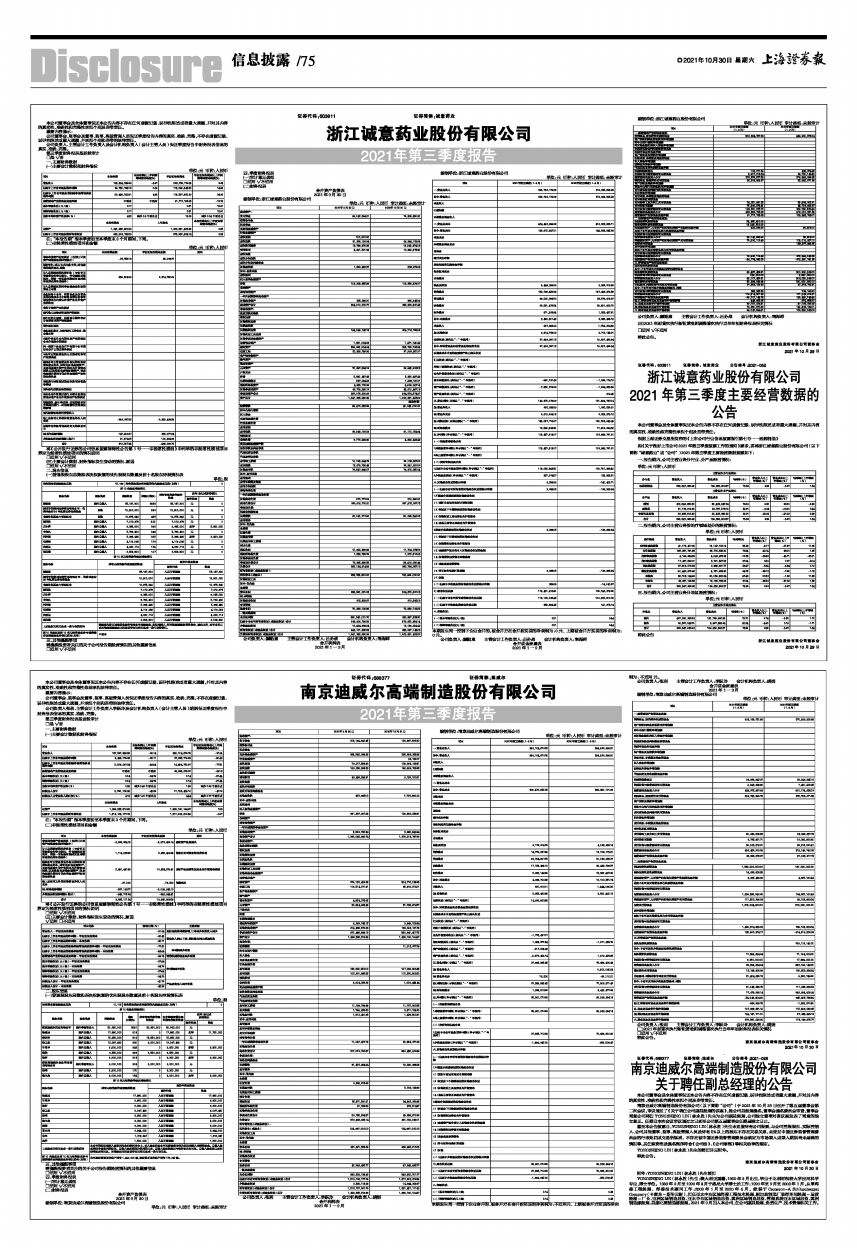 和《关于做好上市公司2021年第三季度披露工作的通知》要求,现将浙江诚意药业股份有限公司(以下简称“诚意药业”或“公司”)2021年第三季度主要经营数据披露如下: