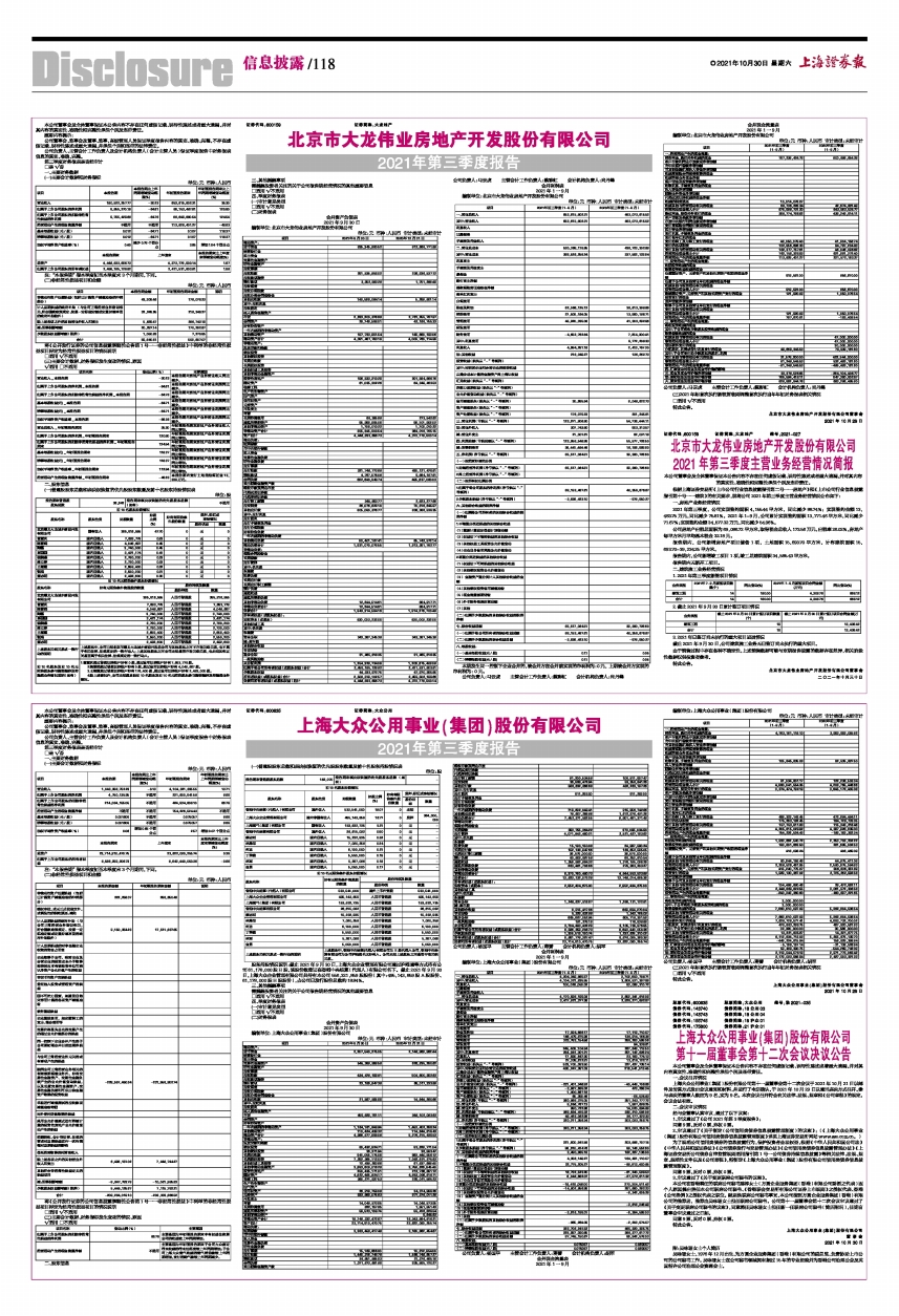 上海大众公用事业(集团)股份有限公司2021年第三季度报告