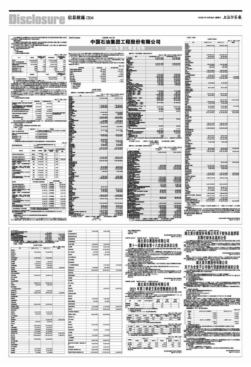 1. 公司前三季度新签合同额650.43亿元,已中标未签合同99.42亿元,已签约未生效合同103.62亿元。新签合同额中:国内合同额495.14亿元,境外合同额155.29亿元。油气田地面工程业务新签合同额126.13亿元,占比19.39%;管道与储运工程业务新签合同额175.80亿元,占比27.03%;炼油与化工工程业务新签合同额241.56亿元,占比37.14%;环境工程、项目管理及其他业务新签合同额106.94亿元,占比16.44%。新签项目对公司未来持续经营和盈利提供了有效支撑。