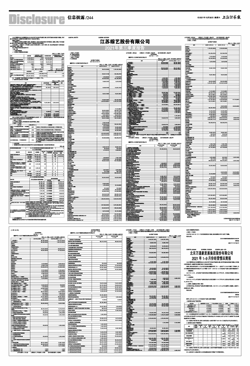 根据上海证券交易所《上市公司行业信息披露指引第二号一一房地产》(2020年修订)的要求,北京万通新发展集团股份有限公司(以下简称“公司”)2021年1-9月份房地产业务主要经营数据如下: