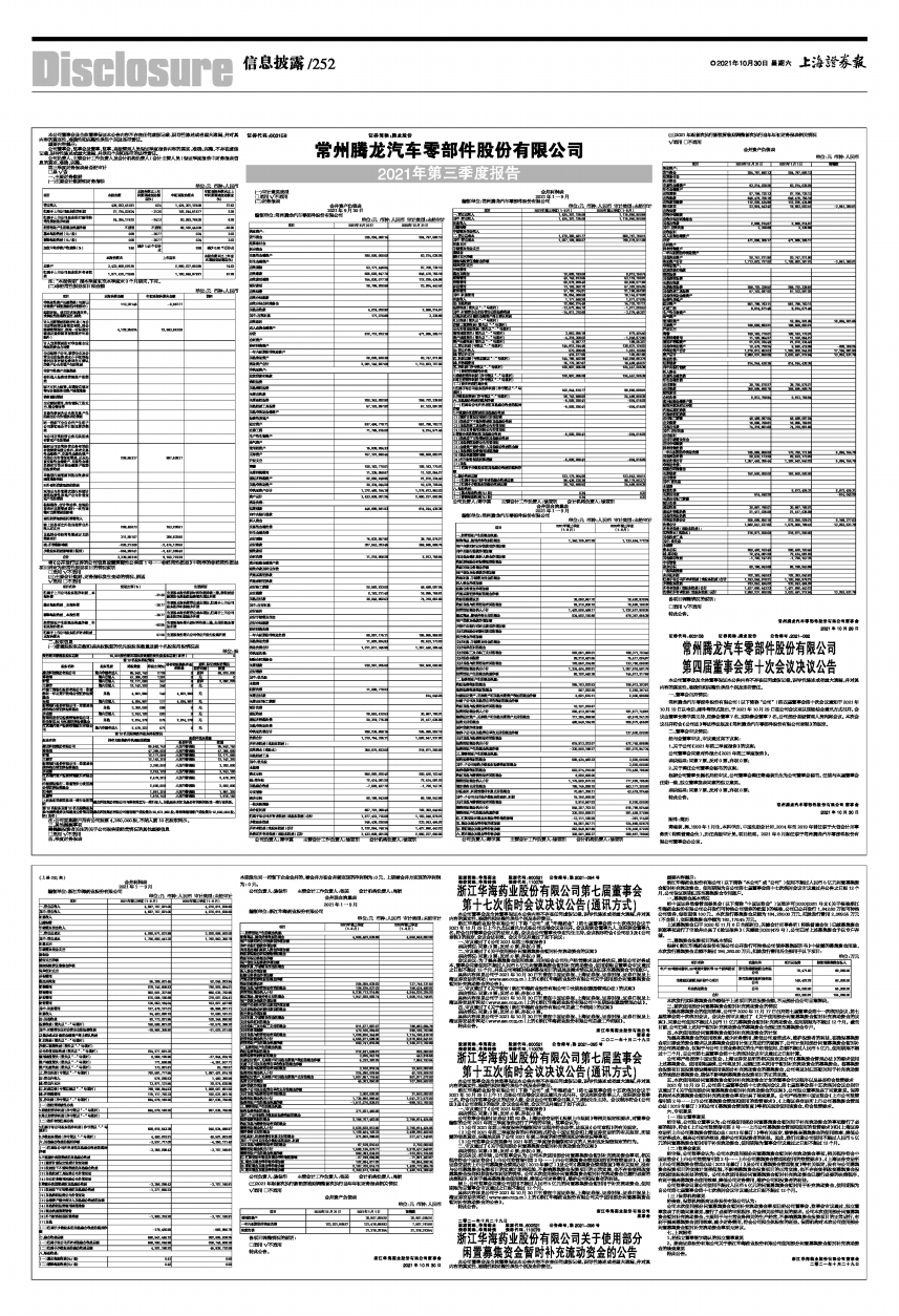 常州腾龙汽车零部件股份有限公司2021年第三季度报告