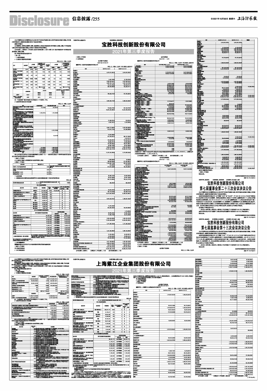 上海紫江企业集团股份有限公司2021年第三季度报告