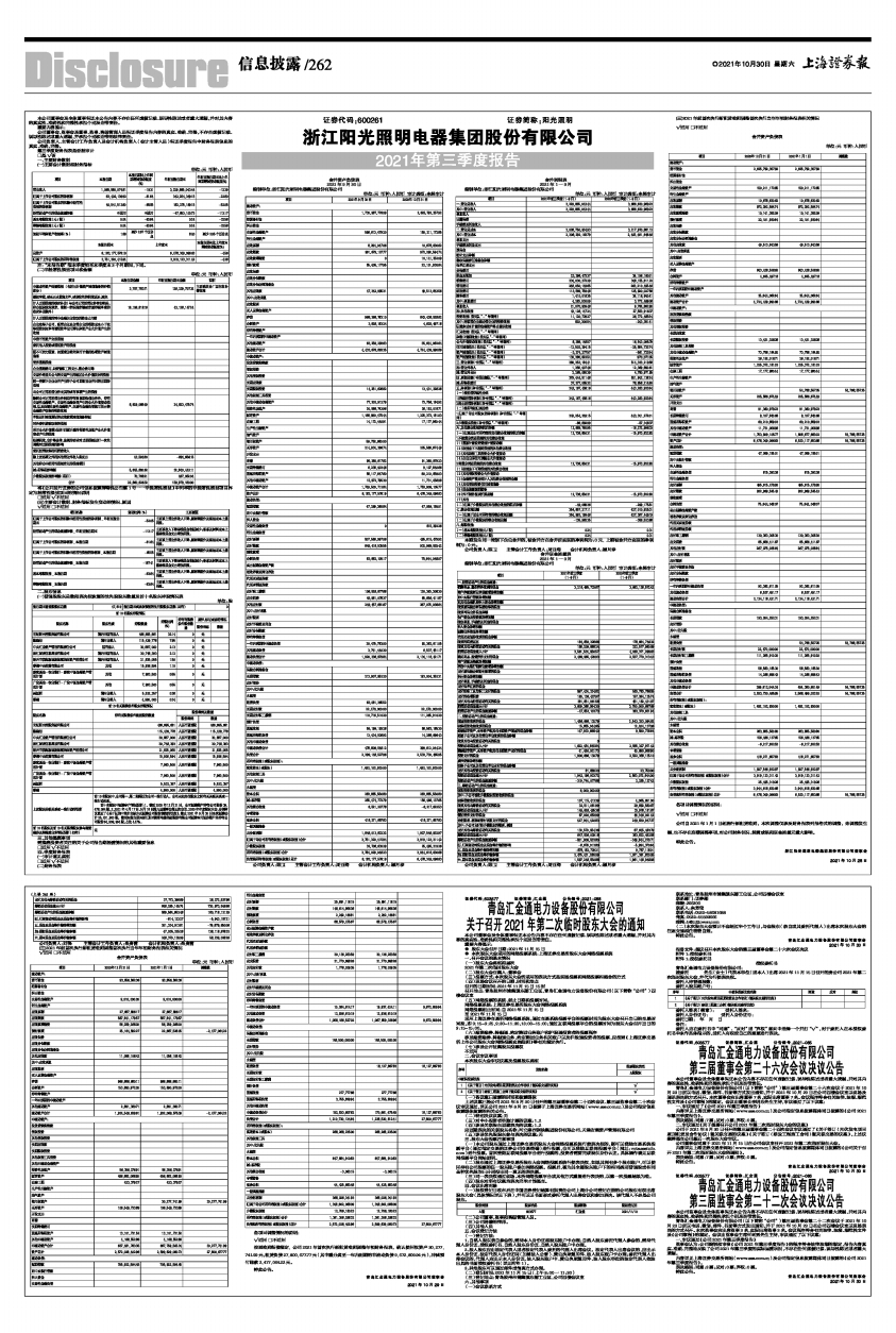 青岛汇金通电力设备股份有限公司(以下简称“公司”)第三届董事会第二十六次会议于2021年10月23日前以电话、微信、邮件、书面等方式发出通知,并于2021年10月29日在公司四楼会议室以现场及通讯表决的方式召开。本次董事会应出席董事7名,实际出席董事7名。会议程序符合有关法律、法规、规范性文件及《公司章程》的规定。会议由董事长李明东先生主持,审议通过了以下议案: