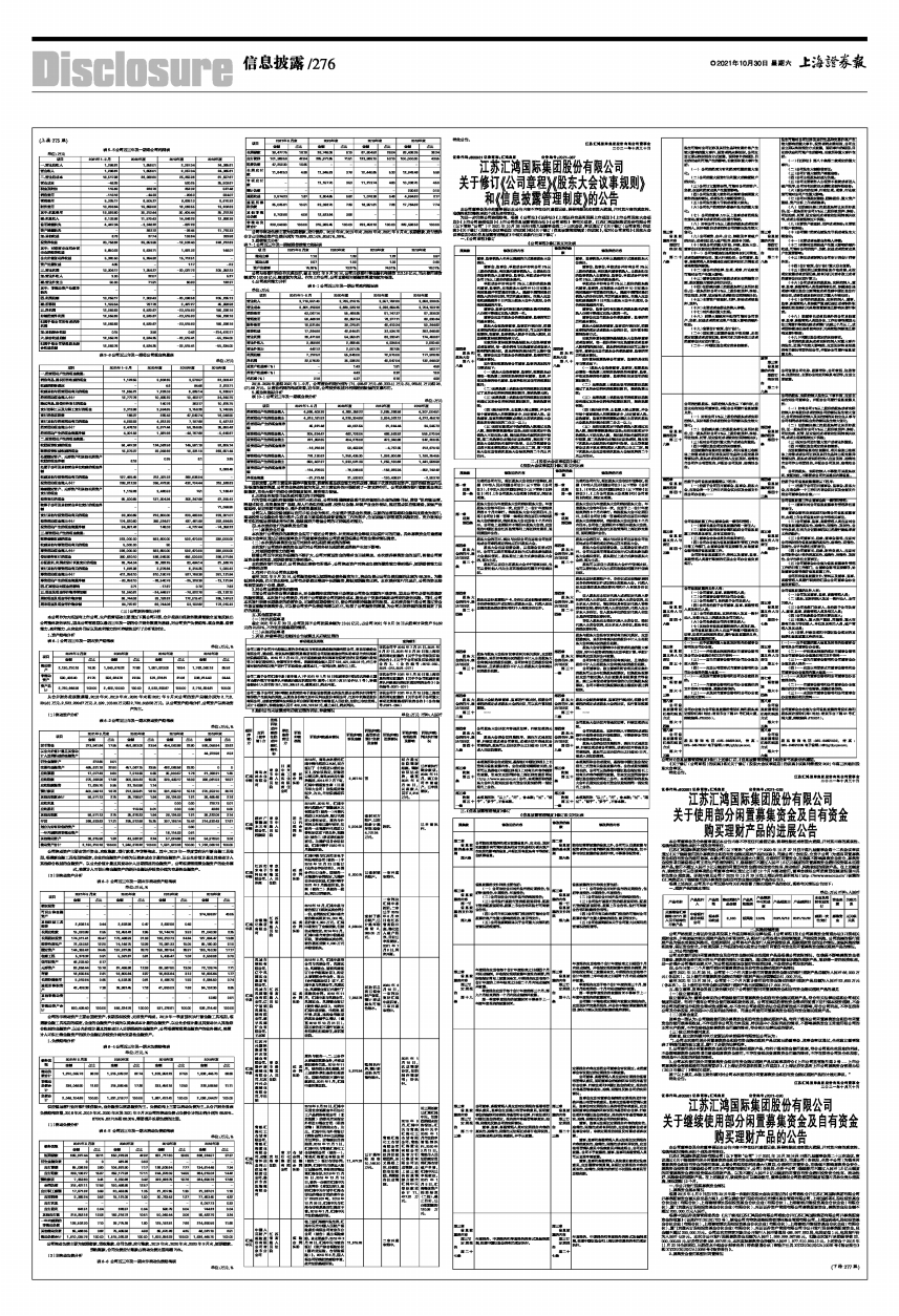 为进一步完善公司治理结构,根据《公司法》《证券法》《上海证券交易所股票上市规则》《上市公司股东大会规则》《上市公司治理准则》《上市公司信息披露管理办法》《公司章程》等有关规定,江苏汇鸿国际集团股份有限公司(以下简称“公司”)于2021年10月28日召开第九届董事会第二十三次会议,审议通过了《关于修订〈公司章程〉的议案》《关于修订〈股东大会议事规则〉的议案》和《关于修订〈信息披露管理制度〉的议案》,拟对《公司章程》《股东大会议事规则》和《信息披露管理制度》中相关条款作出如下修订: