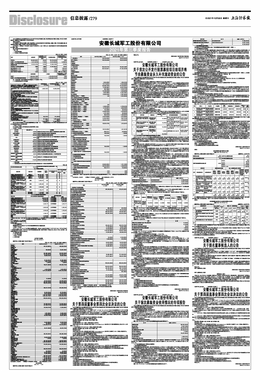 具体内容详见公司在上海证券交易所网站(www.sse.com.cn)发布的《长城军工2021年第三季度报告》。