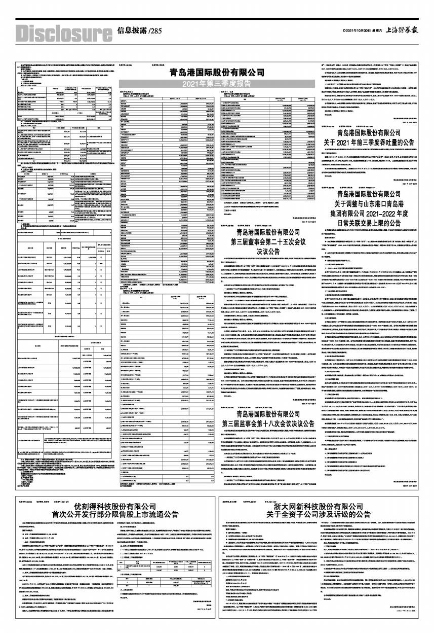 相关内容请详见与本公告同时刊登的《青岛港国际股份有限公司2021年第三季度报告》。