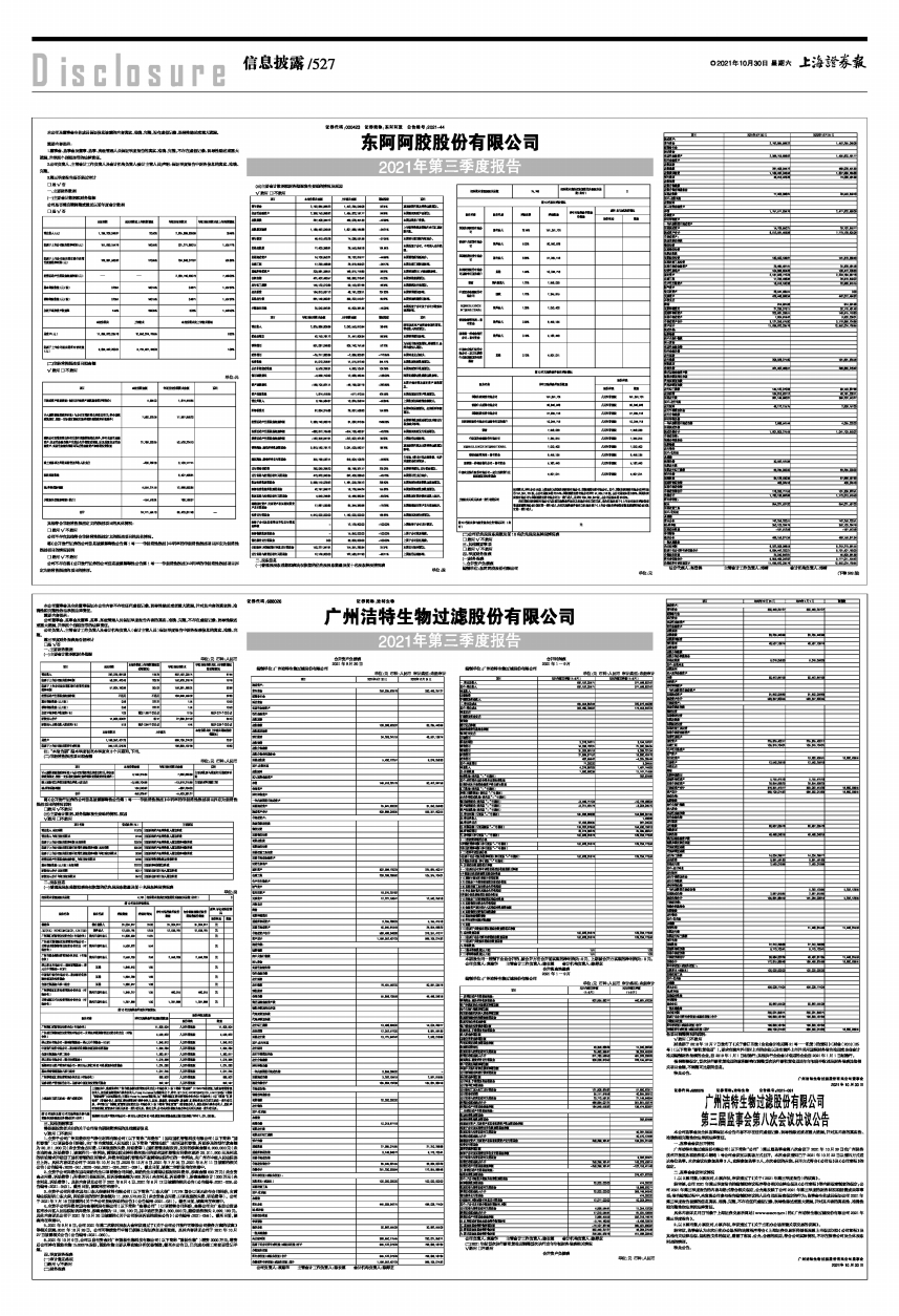 东阿阿胶股份有限公司2021年第三季度报告