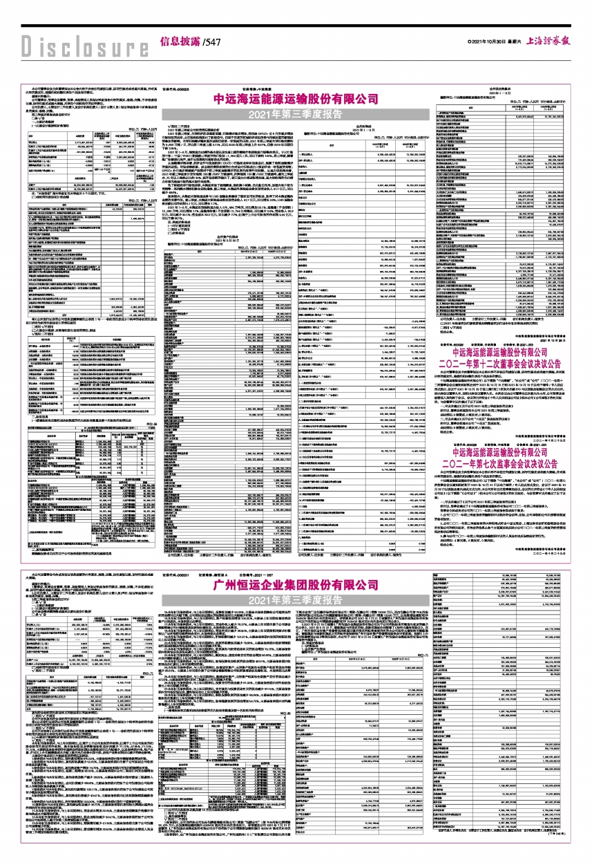 中远海运能源运输股份有限公司2021年第三季度报告