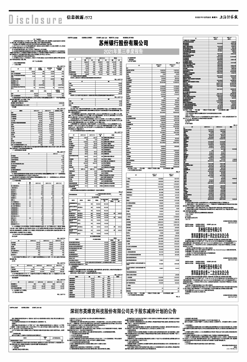 苏州银行股份有限公司2021年第三季度报告在巨潮资讯网(http://www.cninfo.com.cn)披露,供投资者查阅。