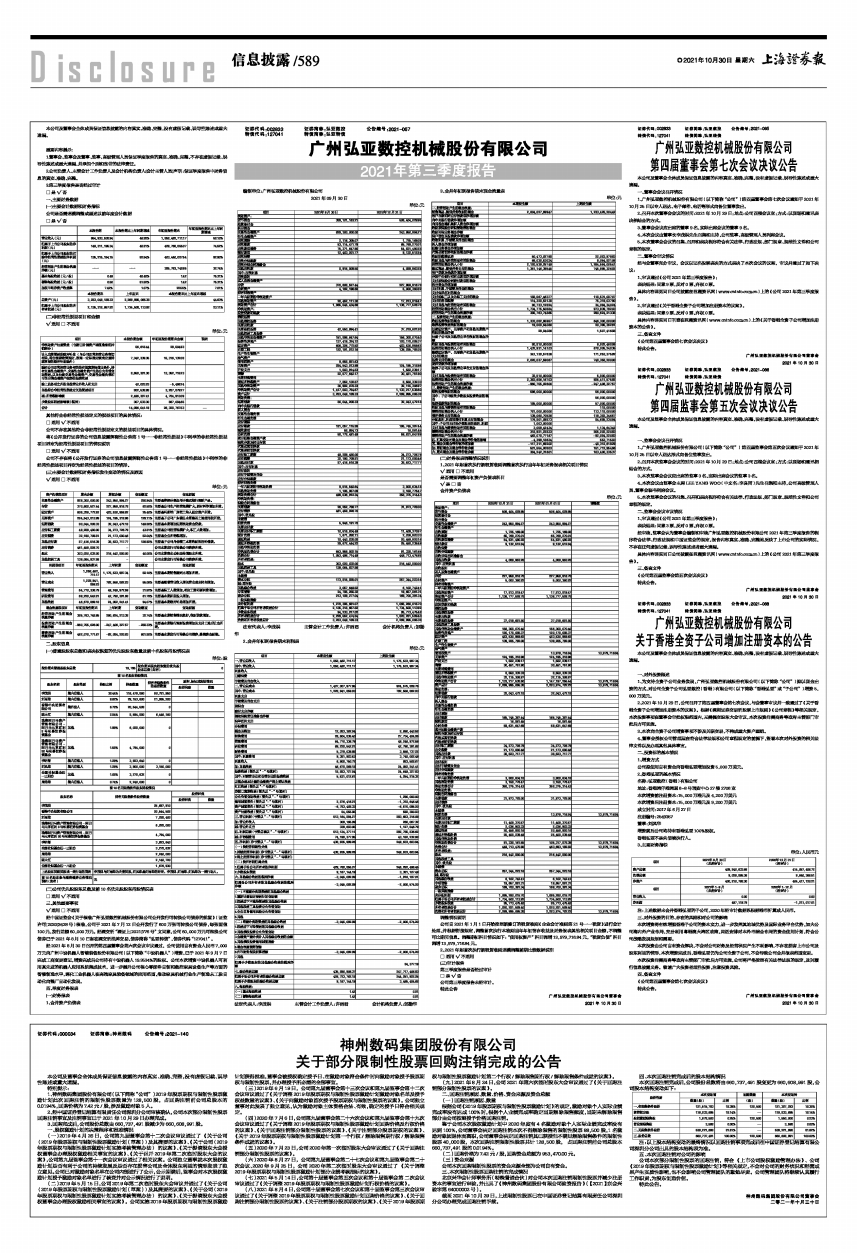 广州弘亚数控机械股份有限公司2021年第三季度报告