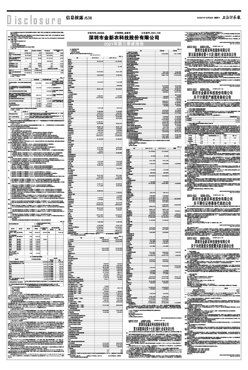 深圳市金新农科技股份有限公司2021年第三季度报告