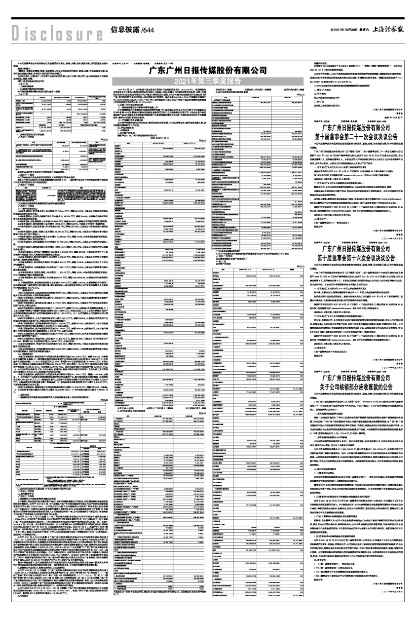 广东广州日报传媒股份有限公司2021年第三季度报告